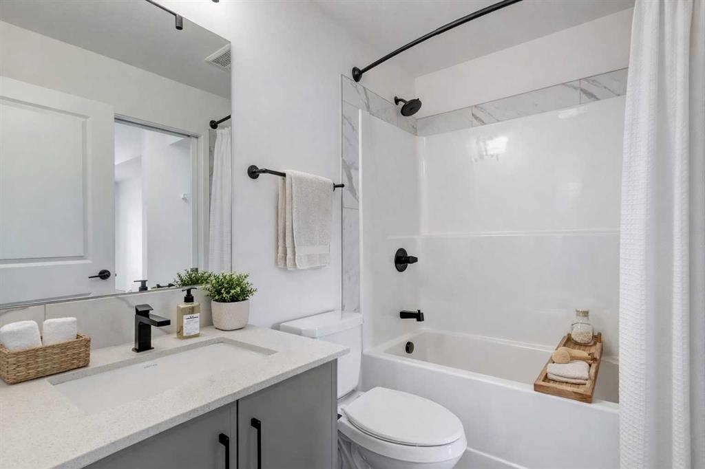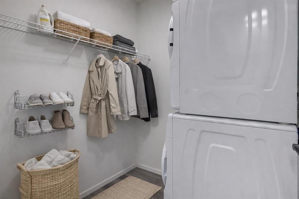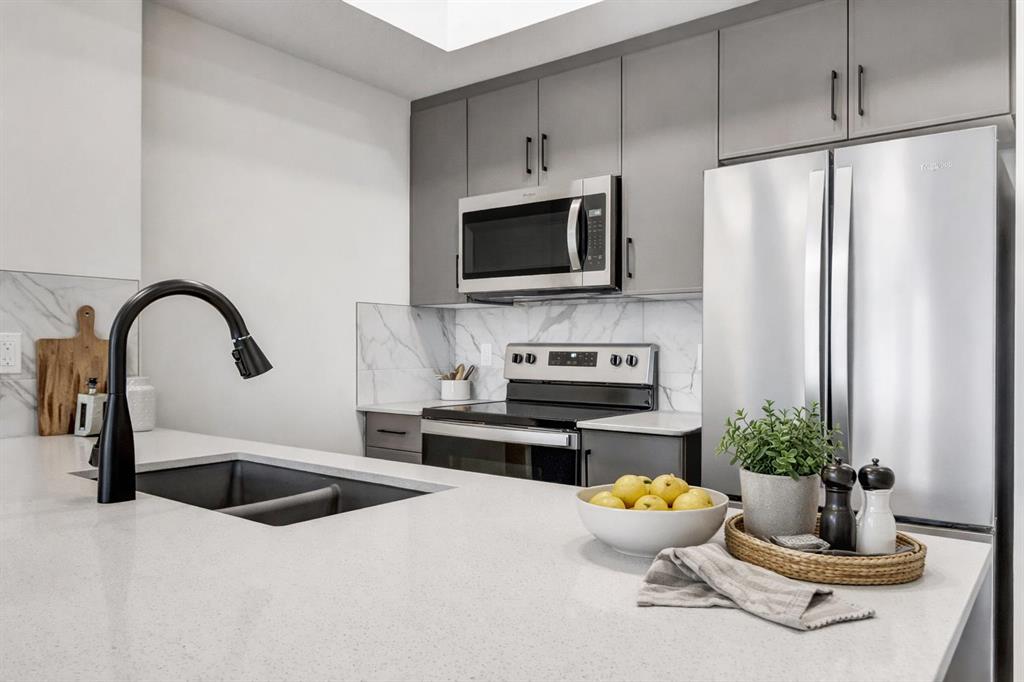 Step into a lifestyle that feels like a getaway—every single day. Welcome to Sandgate at Mahogany, built in 2025, where lakeside living meets everyday convenience in one of Calgary’s most vibrant, sought-after communities. Perched on the top floor, this beautifully designed 1-bedroom, 1-bath condo offers soaring ceilings and an airy, open feel that instantly feels like home. Sunlight pours into the living space, highlighting the modern finishes—quartz countertops, sleek luxury vinyl plank flooring, and brand-new Whirlpool stainless steel appliances—all thoughtfully chosen to blend style with effortless living. The kitchen flows seamlessly into the dining and living areas, creating the perfect space to unwind or entertain. Just beyond, your private balcony overlooks the peaceful courtyard and is already roughed-in for A/C and a gas line—ideal for summer BBQs and quiet evenings outdoors. Your spacious bedroom becomes a true retreat, complete with soft carpeting, a walk-through closet, and direct access to a semi-ensuite bath. A generously sized laundry room with extra storage adds to the everyday ease this home offers. All utilities included except power. But what truly sets this property apart is the lifestyle. From your doorstep, you’re moments from the energy of Westman Village—boutique shops, cafés, restaurants, and fitness studios—all woven into a walkable, community-focused setting. Spend your days at Mahogany’s private Beach Club, where you can paddleboard, swim, fish, or simply relax by the water. Parks, pathways, playgrounds, and dog parks are all just steps away. This unit comes with 1 titled parking stall. With access to a resident fitness studio, guest suites, and a pet-friendly environment, this home is perfect for first-time buyers, downsizers, or investors looking for something special. This isn’t just a condo—it’s a lifestyle. Pack your bags and start living it.